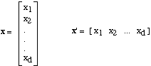 x' y = y' x = || x || || y || cos( angle between x and y )Thus, the inner product of x and y is maximum when the angle between them is zero, i.e., when one is just a positive multiple of the other. Sometimes we say (a little loosely) that x' y is the correlation between x and y, and that the correlation is maximum when x and y point in the same direction. If x' y = 0, the vectors x and y are said to be orthogonal or uncorrelated.