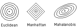 In our template-matching example of classifying characters by counting the number of disagreements, we were implicitly using a Manhattan metric.* For the rest of these notes, we will use either the Euclidean distance or something called the Mahalanobis distance. We will see that