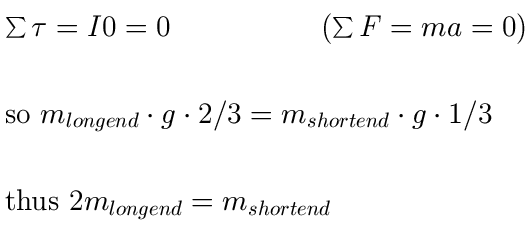 Example: A fulcrum with a pivot at 1/3 its length will balance with