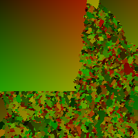 The L2 norm of neighborhoods is far from being a perfect similarity measure. For this reason, the best neighborhood found using this criteria may not actually be the most desirable one. One simple but important modification to the algorithm is using coherence. We search in a 3x3 neighborhood of the current pixel and see if any of its neighbors after an adequate shift provides a low error in the L2 norm. Low here means comparable to best neighborhood up to a tolerance as described in the original paper. Coherence has the nice property that it brings a patch-based behavior in the point-based method. This is clearly shown in the images below where we vary the coherence parameter. The green and red images encode respectively x and y coordinates of the source pixel. They clearly show bigger patches for higher coherency values. For all our other results in this assignment, we use kappa = 2.