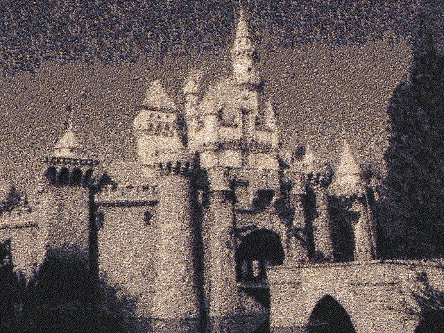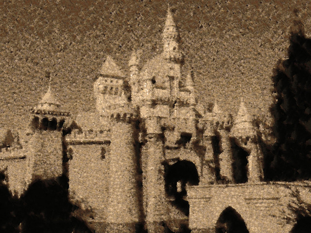 Castles built with bread and sand are demonstrated here. To get these results, I transfer texture of black bread and sand to the image with a castle.