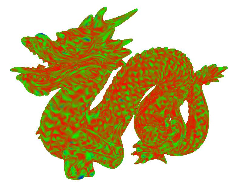 Here I demonstrate the mean curvature of bird, dragon, and amardillo.