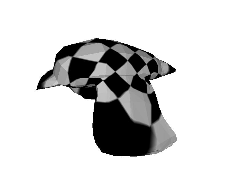 Here I demonstrate the parameterization and texture mapping results of two meshes. Honestly speaking, the result is not satisfying, because forcing the texture borders on a very small area will cause very severe distortion. The smaller the area is, the more distortion there is. That is also the reason why I choose so simple and coarse meshes to demonstrate in this section. A better way for parameterization in my opinion, is to first a longer cut to make the mesh homeomorphic to a topological disk, then bind two opposite edges of the unit square to the cut, and recontruct with zero laplacian.