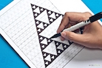 Recursive Graphics (Checklist) Write a program that plots a Sierpinski triangle, as illustrated to the left. Then, you'll develop a program that plots a recursive pattern of your own design. |