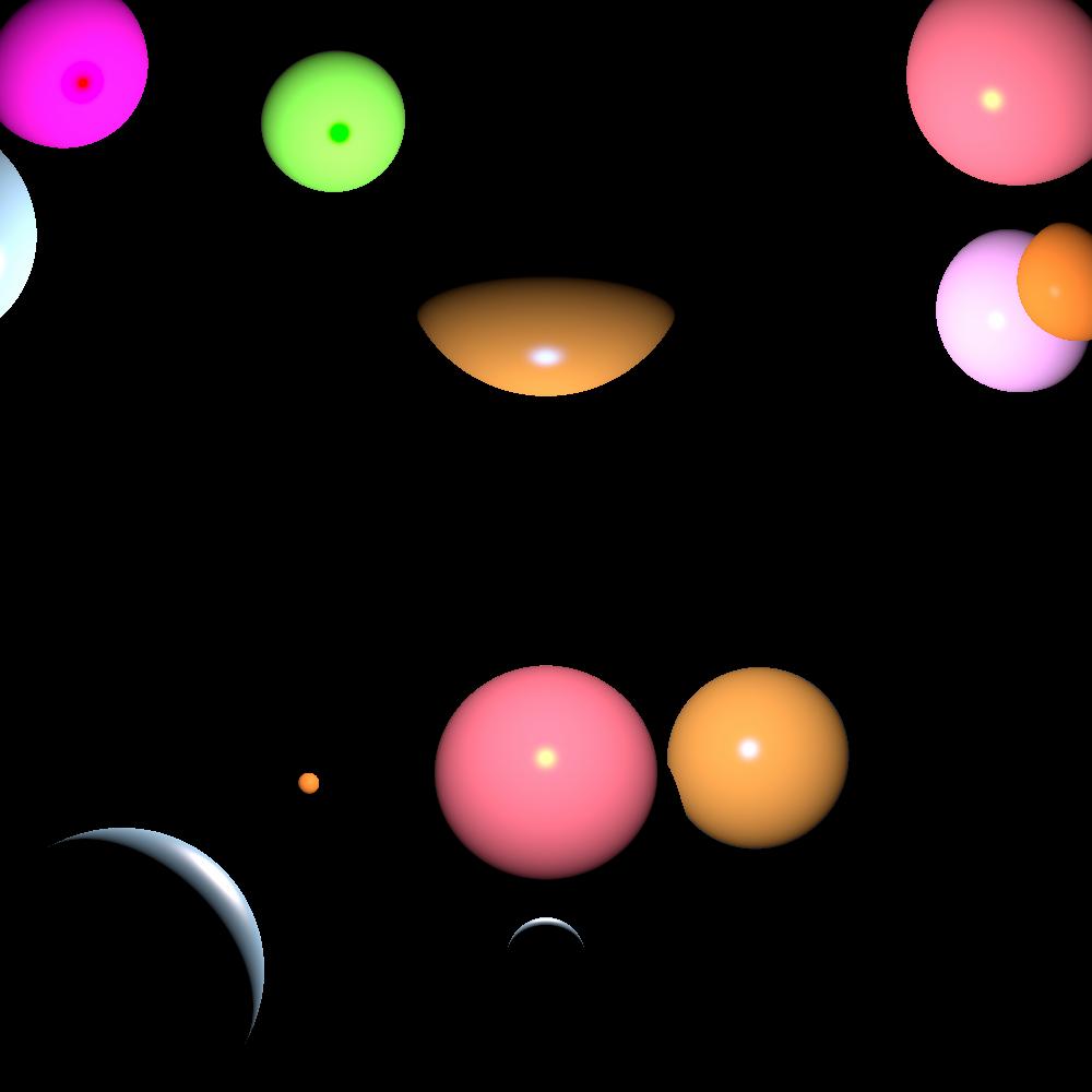 Adjusted the shininess of the bottom-left ball in shininess.scn and rendered it with a depth of 5.