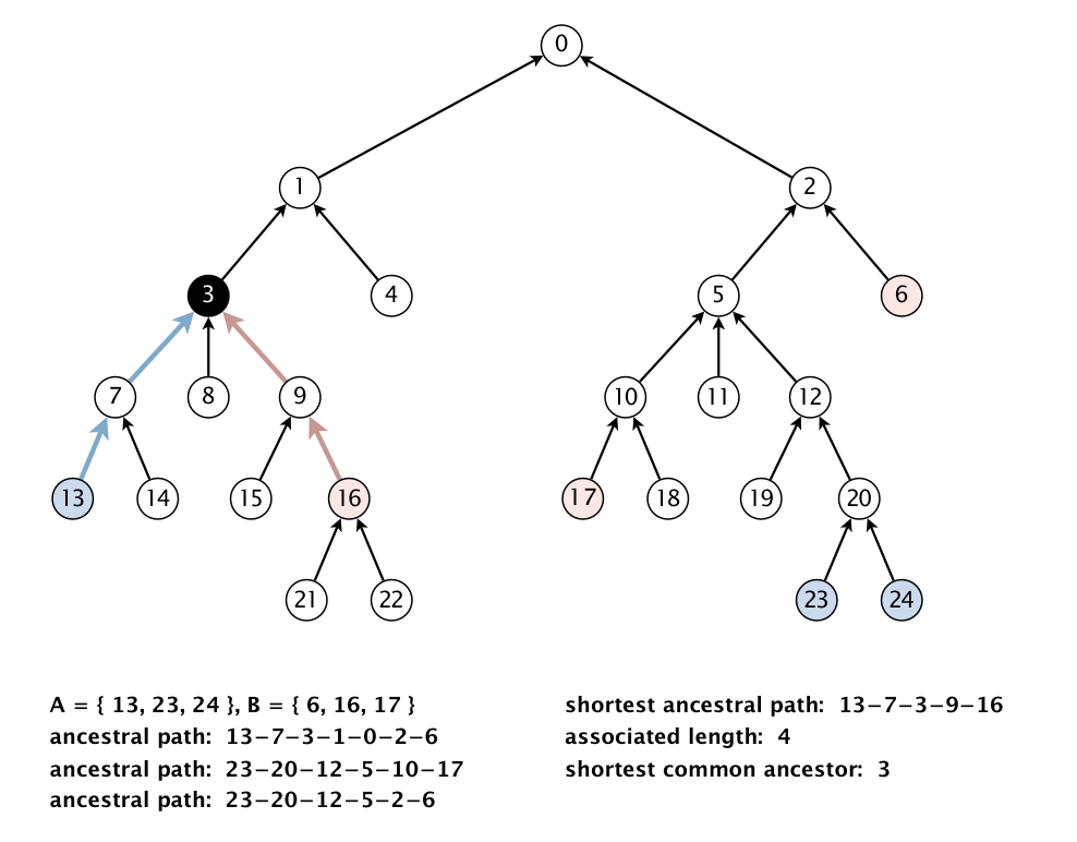Implement an immutable data type ShortestCommonAncestor with the following API: