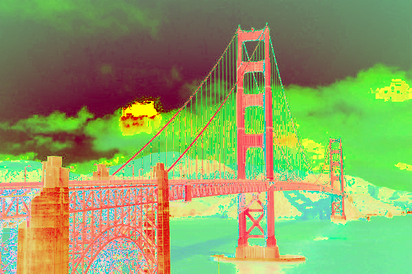 For every pixel in the image, convert the color space to HSL, then set the color of the pixel to 1 - color, where color refers to the current color of the pixel. This creates a pop art filter. Applying the filter repeatedly has some interesting effects (see images below).
