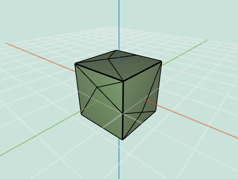 triSubdiv(mesh, levels) recursively splits each selected face in the mesh into four triangles, arranged in the pattern used for Loop subdivision. This effect is applied levels number of times, and the selected mesh should be triangulated before using this function. Note that this method introduces midpoints on all edges, but does not move any existing geometry.