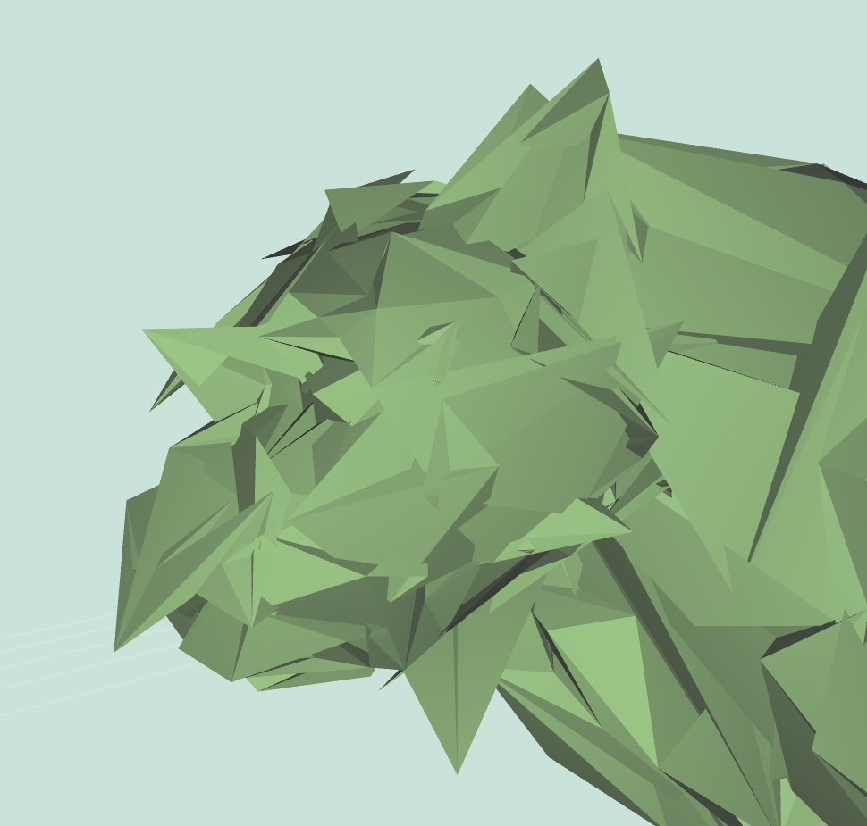 curvature(mesh) computes an estimate of the per-vertex Gaussian curvature (the product of the principal curvatures) of the surface at each vertex v in the mesh. You can use a method based on the Gauss Bonet Theorem, which is described in Akleman, 2006. Store the resulting curvature values in the .curvature property of v. In addition, set the color of v to visualize the curvature values. The color mapping can be done however you like, but if you want some ideas, think about how to map curvature values to hue (via HSL or HSV). This feature is shown by selecting vert colors in the Display Settings.