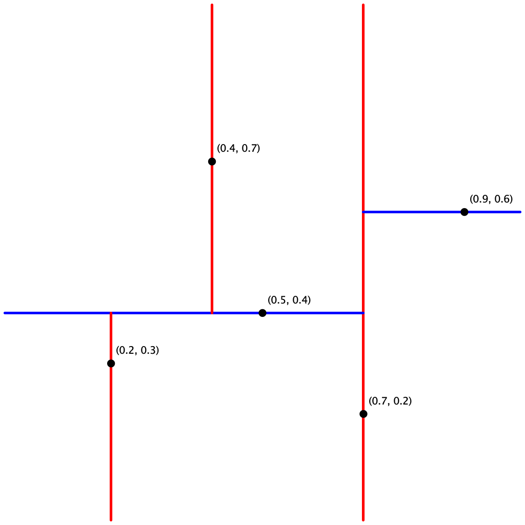 draws the corresponding k-d tree. It does so by reconstruting the k-d tree from