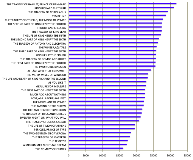 Plot some simple graphs of your results. For example, here are the plays sorted in order of approximate word count with Excel: