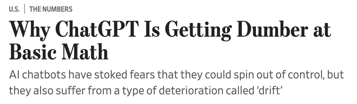Narayanan & Kapoor. Is GPT-4 getting worse over time? AI Snake Oil (Substack) 2023.