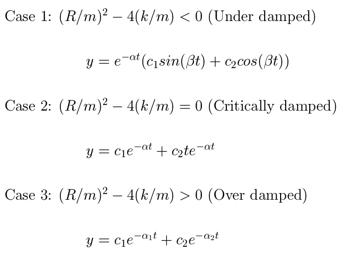 y is the signed displacement from equilibrium (at rest with y = 0).